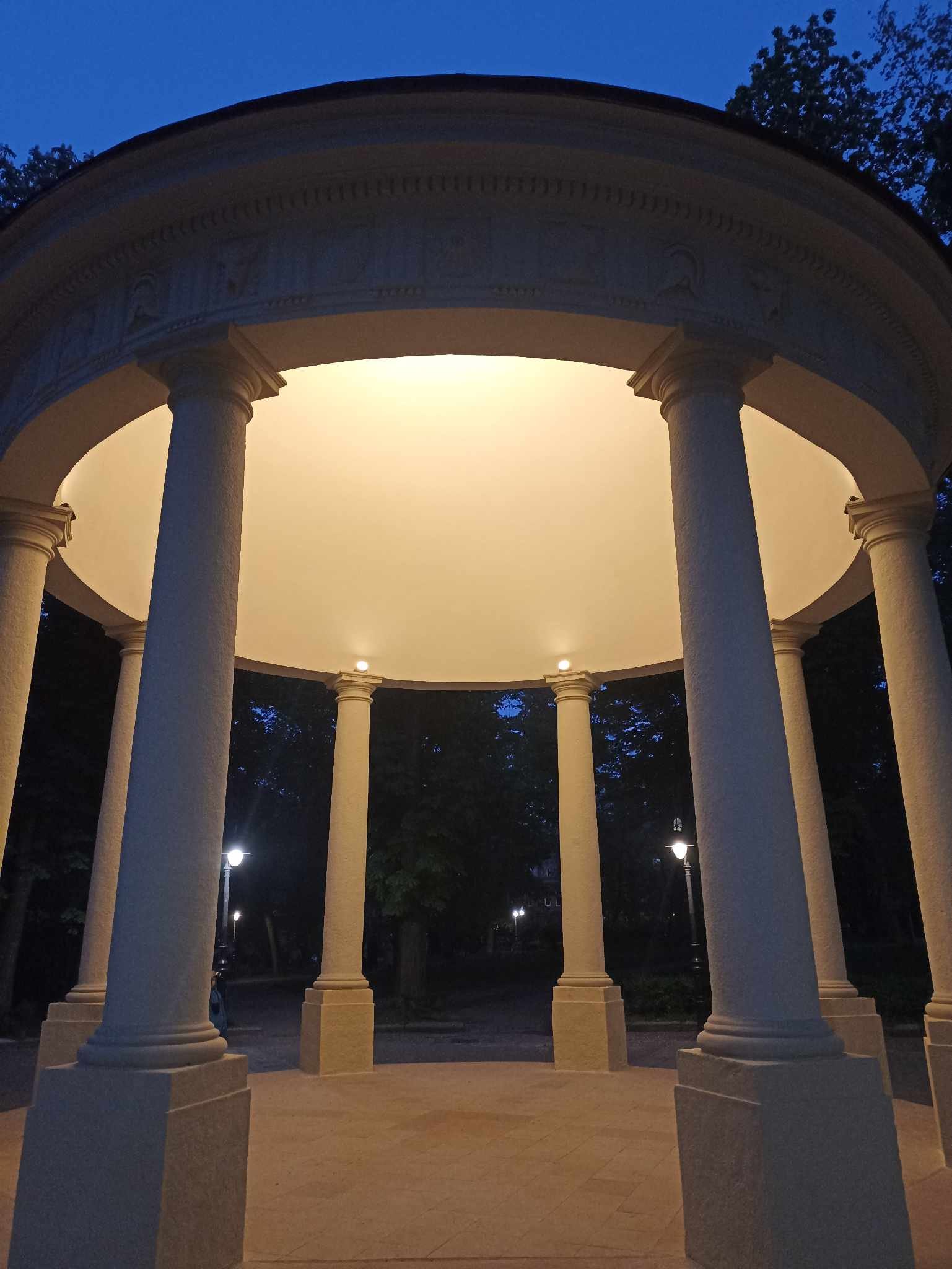 В альтанці вмонтували енергоощадне освітлення – встановили вісім нових світильників зі світлодіодними жарівками. Тепер купол ротонди у вечірній час підсвічується зсередини. Роботи виконали реставратори ТОВ «Ренесанс». Спонсорував роботи оптовий ринок «Шувар».