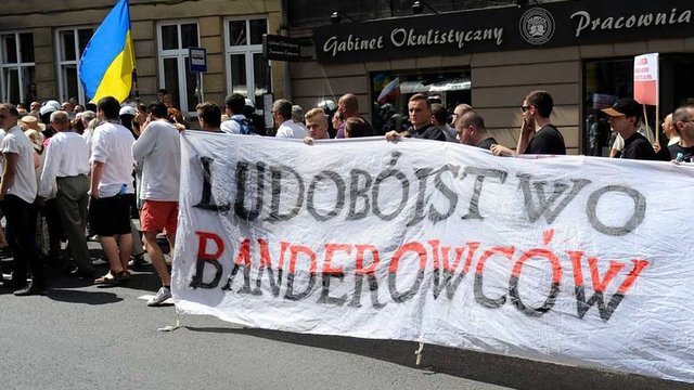 Іншої думки — голова Об’єднання українців у Польщі Петро Тима, який взяв участь в урочистостях. Він наголошує, що контрманіфестанти мали футболки націоналістичної польської організації Усепольської молоді.