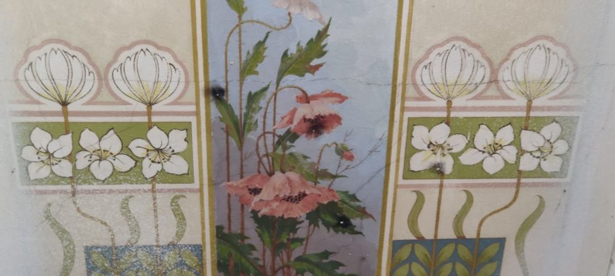 У будинку на вул. Нечуя-Левицького, 19 у Львові виявили унікальні сецесійні розписи, виконані не трафаретом, а вручну. Квітковий орнамент зображений на стелі та стінах пам’ятки архітектури місцевого значення. Цей об’єкт подадуть на програму «Креативна Європа», щоб отримати кошти гранту для відновлення розписів, повідомив ZAXID.NET керівник «Бюро спадщини» Павло Богайчик.