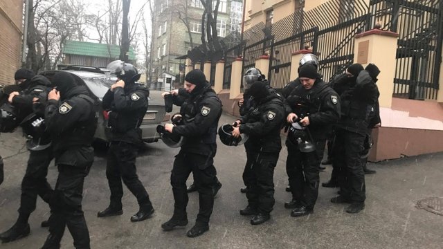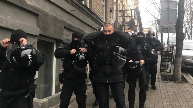 Біля будівлі у центрі Києва перебуває багато спецпризначенців. Через слідчі дії тимчасово обмежено рух, журналістів не пускають.