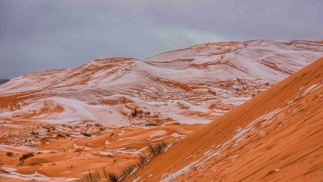 «У пустелі з'явився гарний пейзаж, де зустрілися м'якість золотих пісків і чистий білий сніг», - сказано в описі до фотографії.