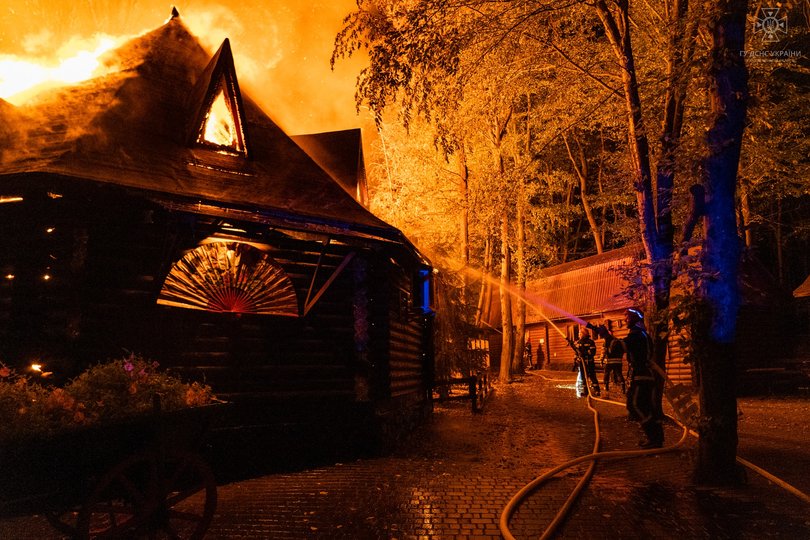 «Через пізнє повідомлення про займання на момент прибуття вогнеборців ресторан та дах вже були повністю охоплені вогнем. Надзвичайники розпочали гасіння, яке ускладнювала велика пожежна навантага. 20 вогнеборців за допомогою чотирьох одиниць спецтехніки не допустили розповсюдження полум'я на сусідні будівлі закладу та лісовий масив», – йдеться у повідомленні.
