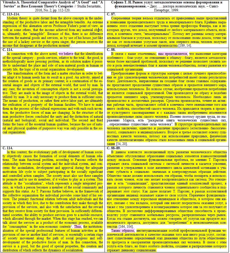 Українські науковці практично скопіювали низку схем, таблицю та частину тексту з дисертації росіянки. Окрім цього, автори сфальсифікували дані, коли вказали чужі результати щодо бізнесу в Росії як дані про бізнес в Україні.