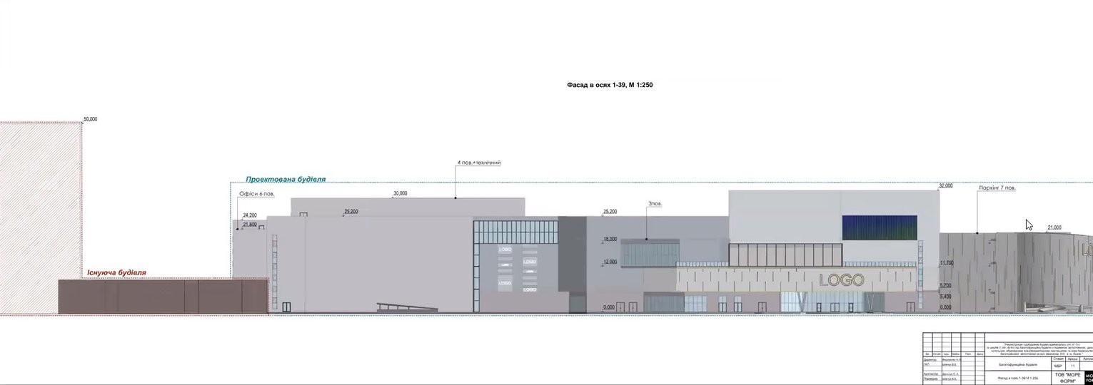 Йдеться про ділянку на вул. Шевченка, 313 площею 1,6 га, призначену для громадської забудови, на якій зараз розташований триповерховий недобуд. На його місці збудують 7-поверховий торговий центр на 8 тис. м2 торгових площ із офісами на 1000 м2, кінотеатром IMAX на 400 місць, фудкортами, підземним паркінгом на 217 автомобілів та наземним на 277 авто.