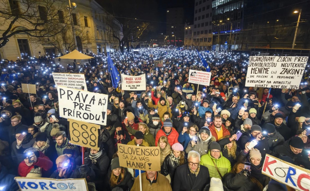 Ввечері 11 січня тисячі людей вийшли увечері вийшли на вулиці міст Словаччини, протестуючи проти планів нового уряду на чолі з прем’єром Робертом Фіцо внести зміни до кримінального законодавства. Про це повідомляє агенція AP.