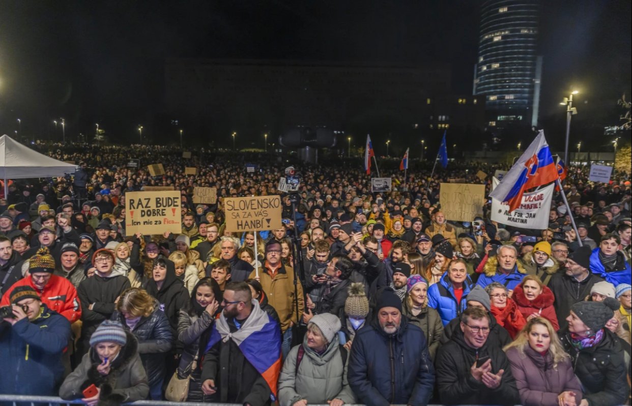 Тільки на центральній площі Братислави на акцію вийшли близько 20 тис. людей. Натовп скандував: «Мафія, мафія» і «З нас досить Фіцо». Протести пройшли відносно спокійно, сутичок не спостерігалося.