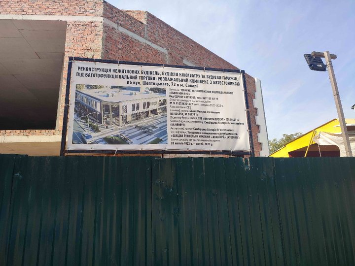 У системі електронних торгів арештованим майном (СЕТАМ) опублікували оголошення про продаж колишньої будівлі кінотеатру, на місці якого почали будувати ТРЦ, площею 1124,5 м² та гаражі площею 92,6 м². Об'єкти розташовані у центрі Сокаля, на вулиці Шептицького, 72. Стан будівель оцінюють як добрий, а вартість – понад 54 млн грн (з урахуванням ПДВ). Станом на 19 жовтня є три заявки на участь в аукціоні, який відбудеться 30 жовтня.