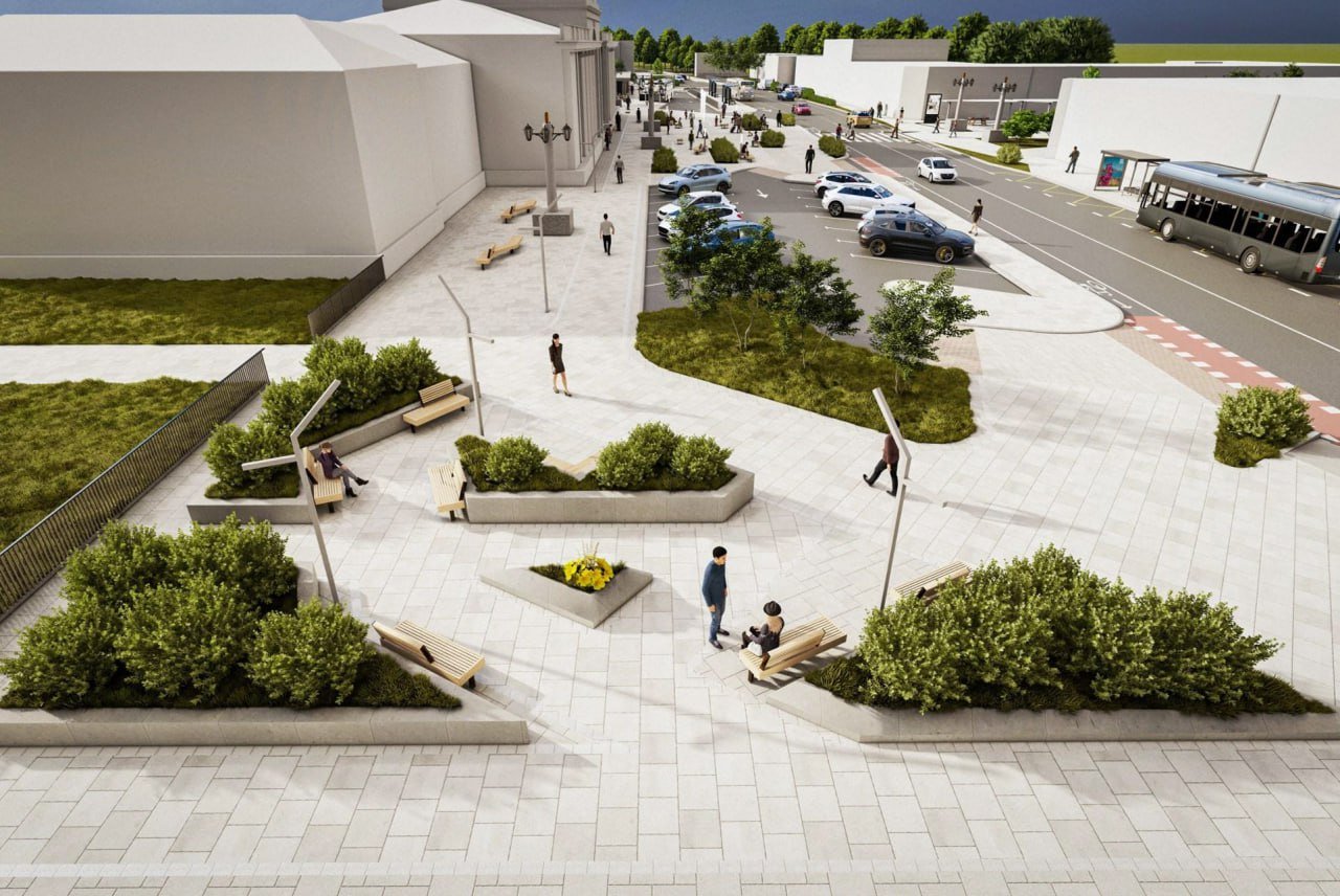 Що стосується самої площі, то тут пропонують облаштувати зони для відпочинку, стоянки для автомобілів і автобусів, значне озеленення та встановити сухий фонтан. Одним із найцікавіших аспектів проекту є створення інклюзивного велопішохідного мостового переходу через залізницю.