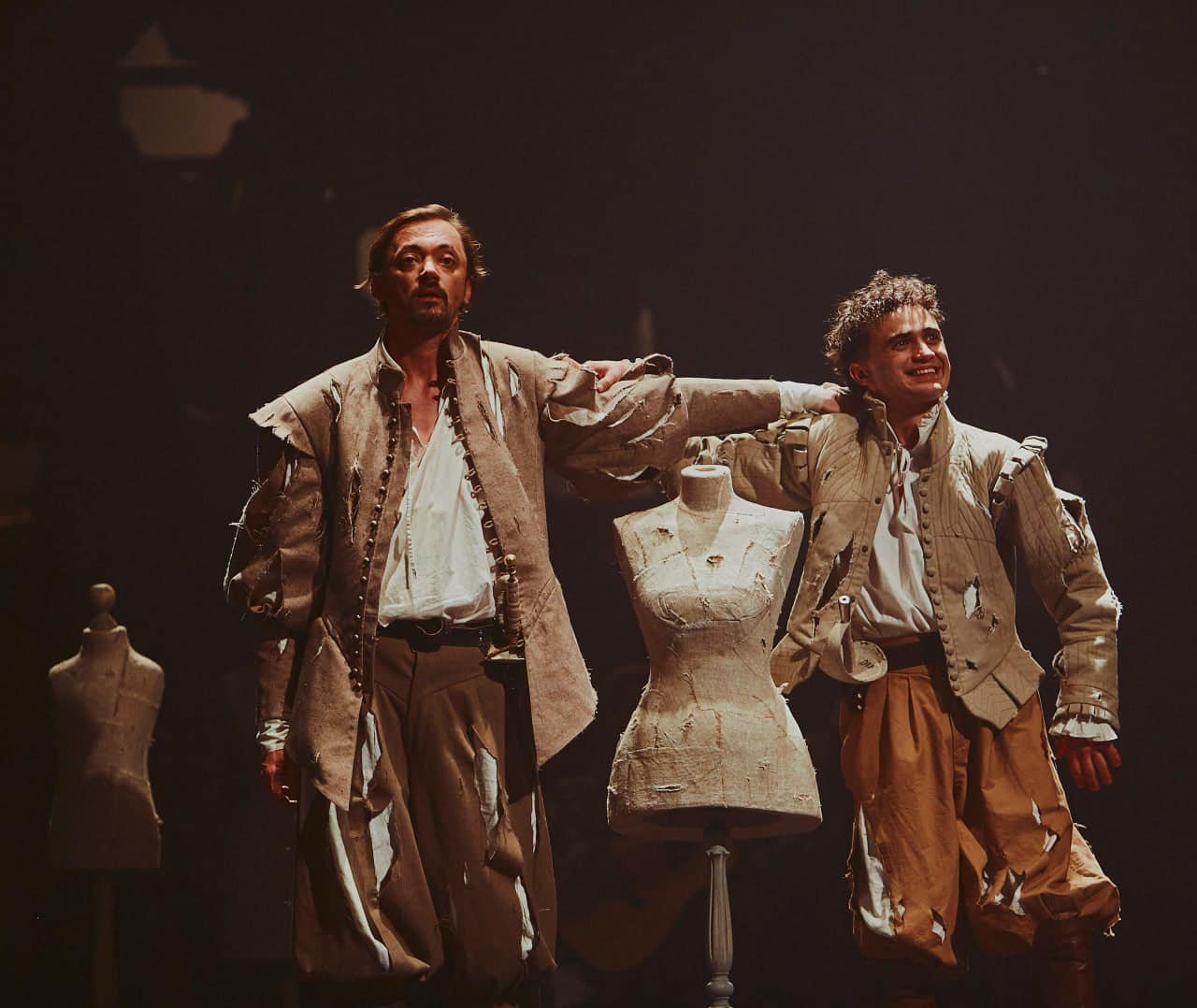 На початку вистави усі чекають на важливу персону, згодом починається вистава, актор Монфлері читає вірші… Тичини. Виходить Сірано та розганяє любителів радянської поезії. Таким чином доволі прямолінійно ми відразу занурюємося не у виставу про кохання, а у виставу про відповідальність мистецтва, цензуру, поезію та владу. Монфлері з’являється ще раз після смерті Сірано, таким чином позбавляючи нас надії на можливість змін.