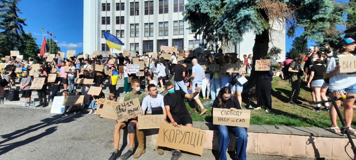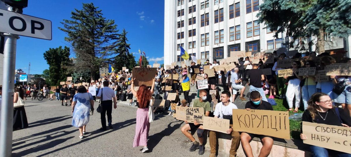 У середу, 23 липня, в Тернополі продовжили мітингувати проти скандального закону, який фактично ліквідовує незалежність Національного антикорупційного бюро та Спеціалізованої антикорупційної прокуратури. На акцію протесту, яка відбулася біля будівлі Тернопільської ОВА та обласної ради, прийшло понад 200 людей. Вони тримали плакати на підтримку антикорупційних органів та скандували гасла.