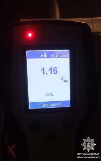 «Під час спілкування з водійкою інспектори виявили в неї ознаки алкогольного сп’яніння. Громадянка погодилася пройти перевірку на місці за допомогою приладу Drager. Результат – 1,16 проміле», – повідомили в патрульній поліції Тернопільської області в п’ятницю, 3 січня.