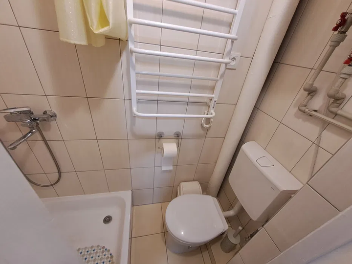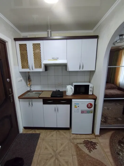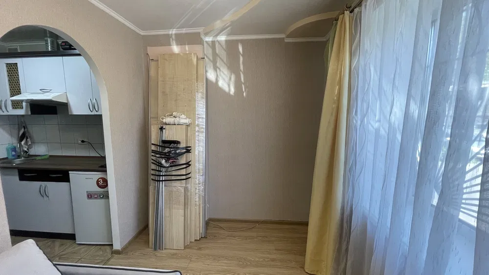 В оголошенні на сервісі ОЛХ зазначено, що квартира розташована на першому поверсі 5-поверхового будинку. Під нею є цокольний поверх, де також розташовані помешкання. Площа кімнати – 7,6 м2, решта ж відведена під міні-кухню і санвузол з душем і туалетом.