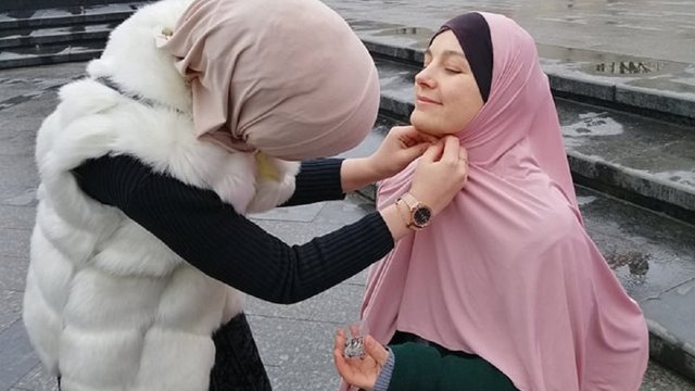 «Правила носіння цієї хустки я пізнавала самостійно. Відчула, що коли знімаю покривало, то моя душа стає ніби оголеною. Якщо ти вдома з рідними чи своїм чоловіком, тоді можеш не одягати його, а от поза домом зобов'язана накидати хіджаб на голову. Ніхто інший не повинен бачити твою красу, вона концентрується лише для обраного», – розповіла Юлія Валенко, яка прийняла іслам майже рік тому.