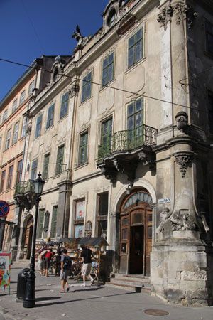 Палац Любомирських (Площа Ринок, 10) – класичний бароковий палац XVIII століття з оригінальним скульптурним декором.