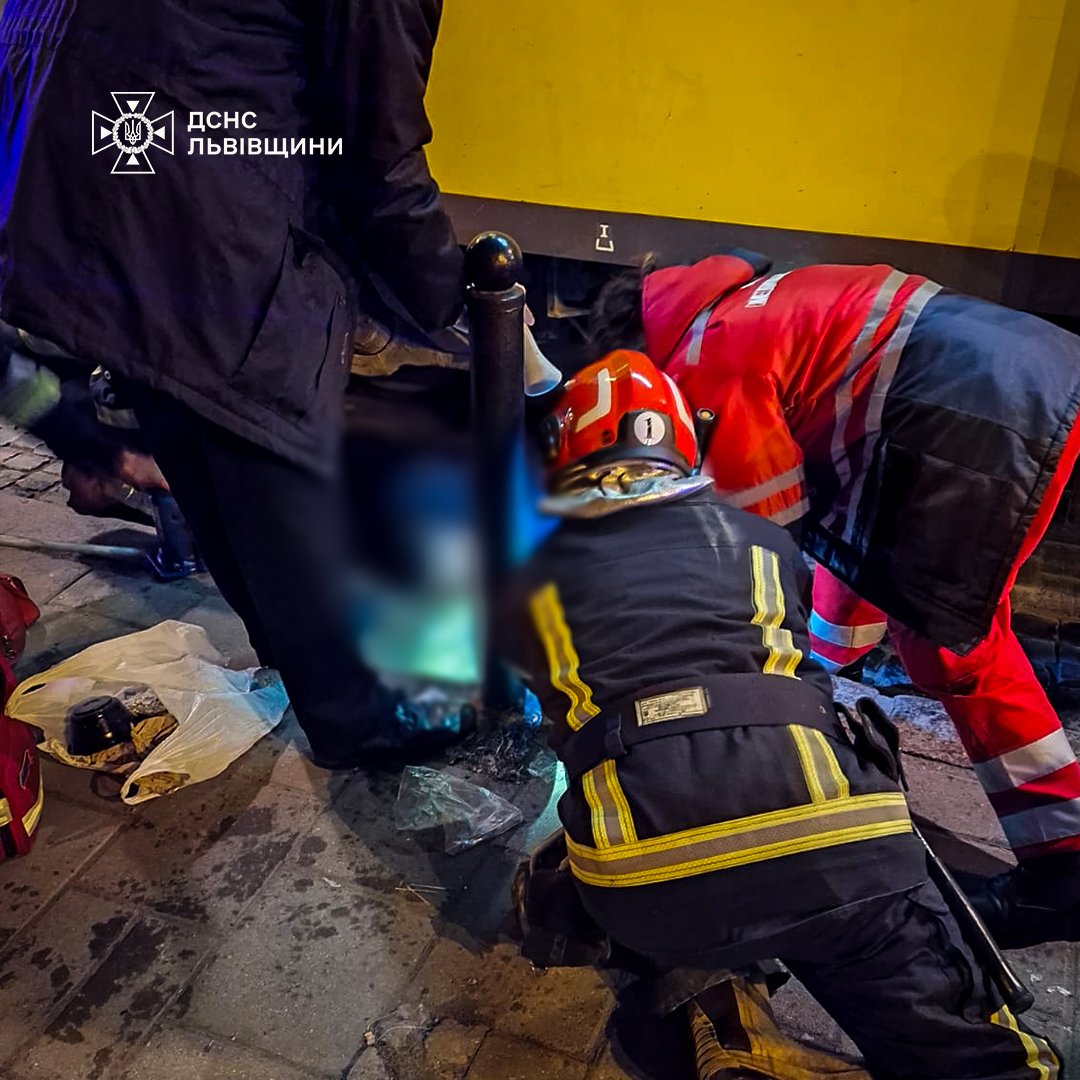 Перехожого з-під трамвая вивільняли рятувальники