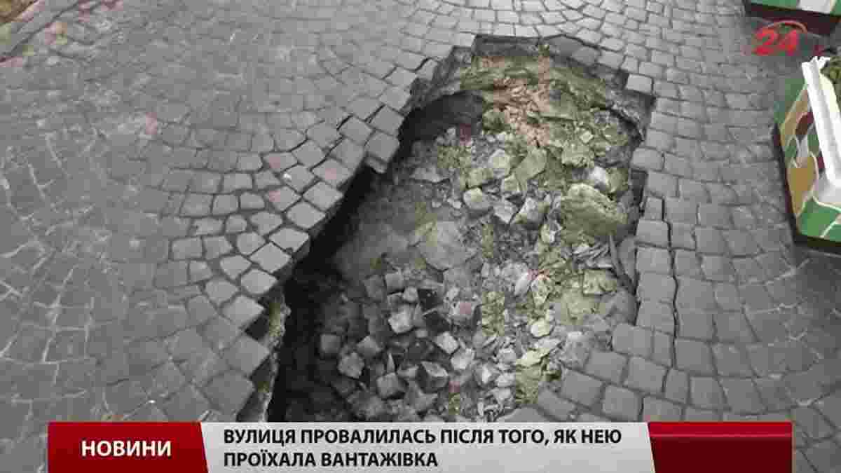 У центрі Львова на вул. Вірменській на брукованій дорозі утворилось провалля. Яма, розміром два на півтора метра, за словами очевидців, утворилась за лічені секунди.