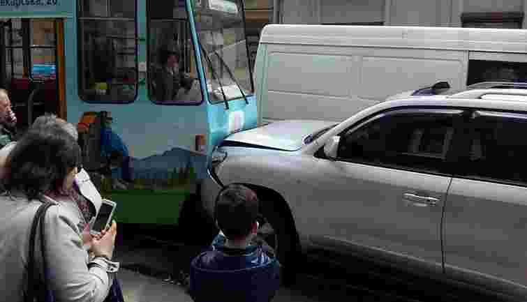 У центрі Львова Toyota Land Cruiser в’їхала у трамвай