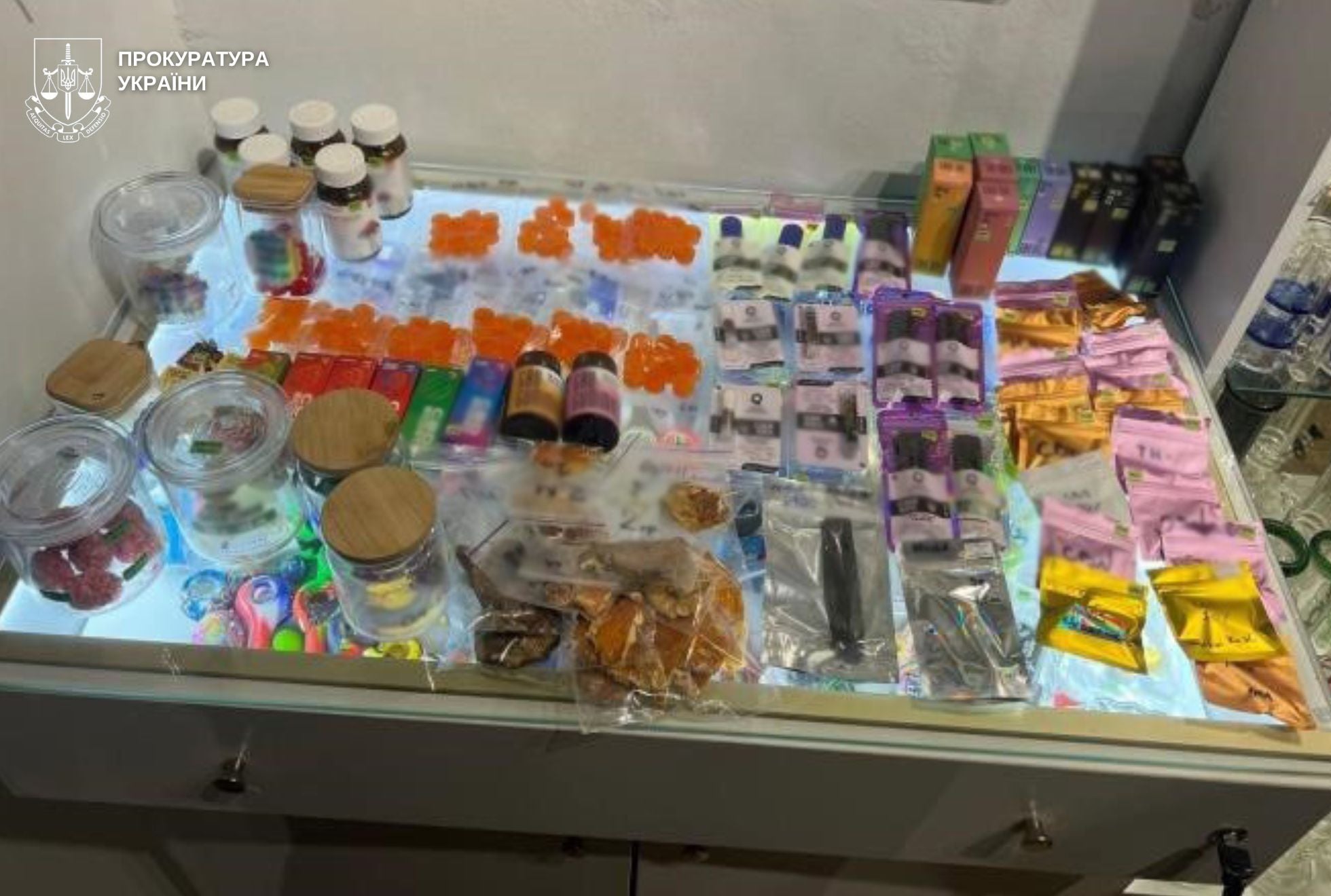 Під час обшуків за місцем проживання та в автівках затриманих вилучили понад 800 желейок, більше 500 цукерок, шоколадки, близько 300 картриджів та інгаляторів, каністри з ополіскувачем для ротової порожнини, банки та інші ємності з психотропними речовинами, 115 банок з екстрактом канабісу, зіп-пакети з псилоцибіновими грибами, психотропні речовини МDMA, LSD та кетамін, засоби та інгредієнти для виготовлення «продукції», засоби для фасування та чорнові записи.
