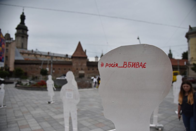 У п’ятницю, 7 липня, напередодні 500 доби повномашстабної війни у Львові на площі Митній презентували артінсталяцію «Росія вбиває». Організатори виставили символічні силуети 30 українців та українок, яких вбив ворог. Захід присвячений пам’яті тисячам вбитих Росією мирних громадян України.