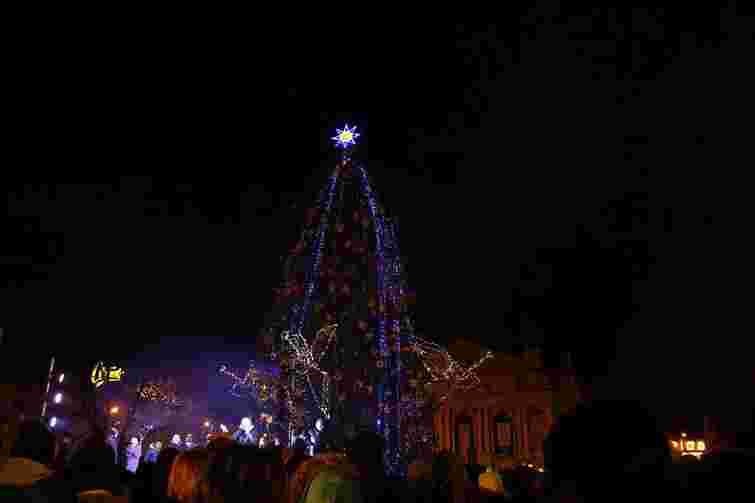 Сьогодні, 19 грудня, на площі перед Оперним театром відкрили головну ялинку Львова, яку прикрасили понад 800 іграшками та синьо-жовтими світильниками.