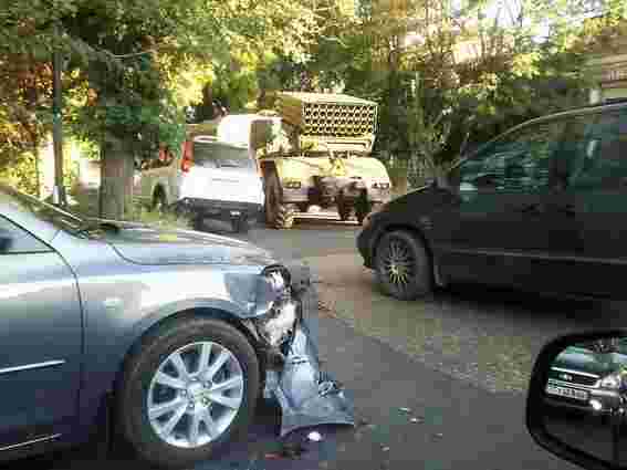 У четвер, 10 вересня, у велелюдній частині центру Сімферополя військова вантажівка з реактивною системою залпового вогню «Град» наїхала на автомобіль Mazda-3.