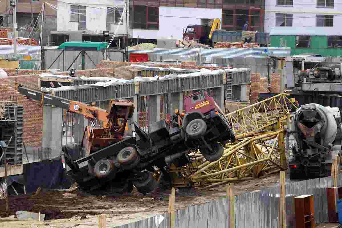 На місце події виїхали працівники слідчо-оперативної групи львівської міліції. За попередніми даними, побачивши, що кран падає, будівельник зістрибнув з риштування та вдарився головою об бетону конструкцію.