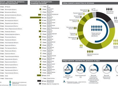 Майже в половині міністерств українського уряду більшість керівних посад належать вихідцям з Донецької та Луганської областей. Аналогічна ситуація спостерігається в Генпрокуратурі, СБУ, судах і на рівні обласної влади.