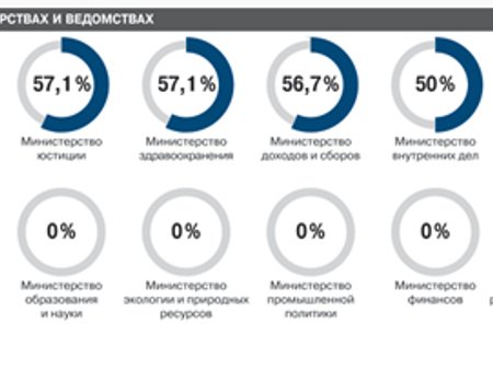 Серед міністерств лідерство належить Міністерству енергетики та вугільної промисловості, керівництво якого на 75% складається з вихідців з Донбасу, Міністерству молоді та спорту (75%) і Міністерству соціальної політики (66,7%).