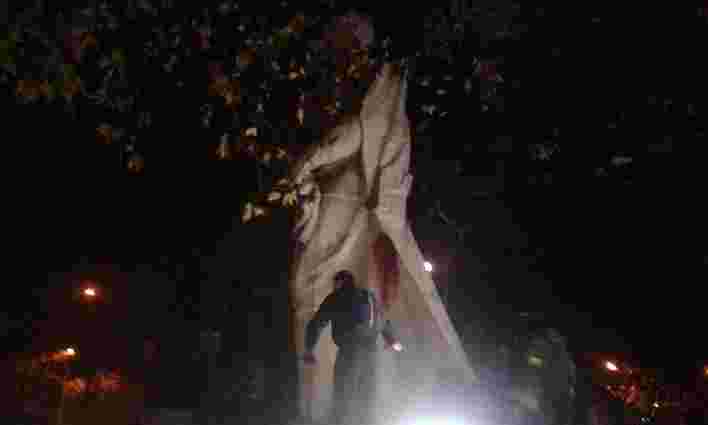 Зазначається, що спершу активісти закидали пам’ятник яйцями, а потім знайшли троси і зараз намагаються за їх допомогою звалити його.