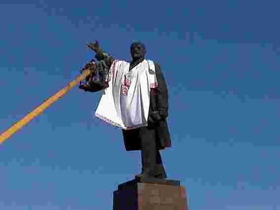 У Запоріжжі пам’ятник Леніну одягнули у вишиванку, щоб не знесли