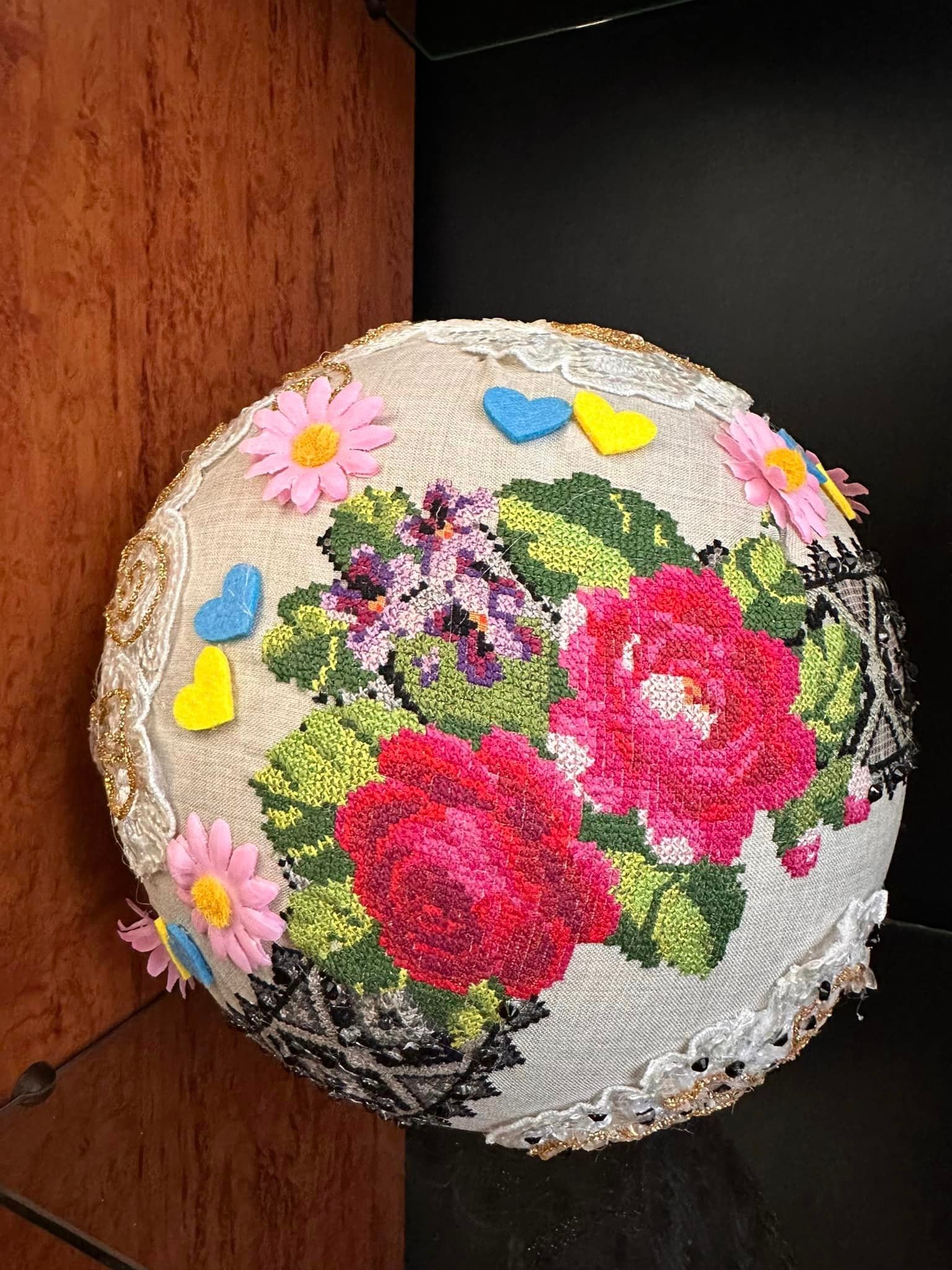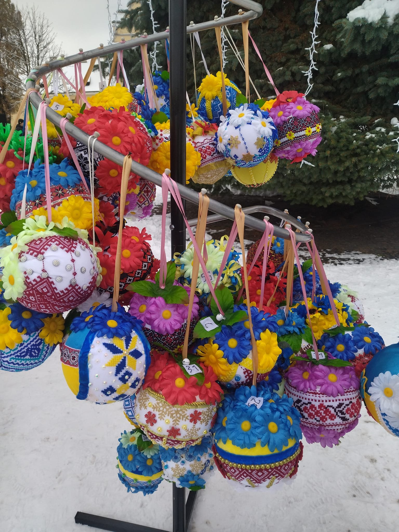 Жовківчанка Галина Ковальська власноруч виготовила 150 ялинкових прикрас, які оздобила ручною старовинною та сучасною вишивкою і декоративними квітами. Свої хенд-мейд вироби вона подарувала місту, ними прикрасили ялинку на центральній площі.