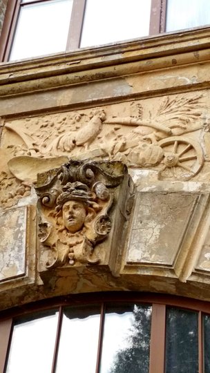 На фасаді Журавненського палацу збереглася ліпнина (фото ZAXID.NET 2019 року)