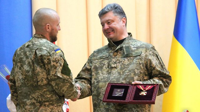 «Саме такі бійці демонструють, що українська армія є непереможною», - сказав президент Порошенко, який сьогодні перебуває в Миколаївській області.