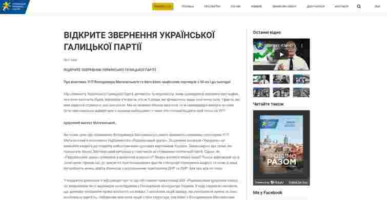 «Ми, спільнота Української Галицької Партії, активісти та журналісти, яким доводилося говорити про мафію, яка хоче захопити Львів, вирішили з’ясувати, хто ж ті люди, які фінансують нашу політичну силу. І факти, які нам вдалося отримати, нас шокували. Ми не можемо більше мовчати, то ж напередодні виборів хочемо бути максимально відвертими з нашими виборцями, з тими, хто готовий віддати свій голос за УГП», – так починалася фейкова заява зі звинуваченнями на адресу Володимира Матківського, якого серед іншого звинуватили у зв'язках з міським головою Львова Андрієм Садовим та представниками «Самопомочі».