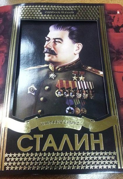 На обкладинці - парадний портрет вождя в золотій рамці. А на передостанній сторінці - досить детальна розповідь про Сталіна, доповнена декількома фотографіями, причому різних періодів. Тут і картка на Йосипа Джугашвілі на прізвисько "Коба", заведена жандармським управлінням, і його фотографії з Горьким і Чкаловим, і знімки ув'язнених і табірної вишки, пише Ukranews.