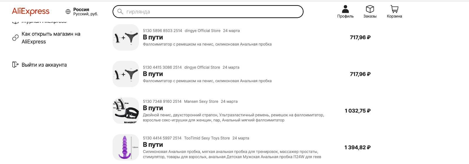 «Наш експонат підв'язав “волонтерські” картку до акаунту на AliExpress, а доступ до акаунту віддав нам. Тепер Міша збирає унікальну колекцію піс*нів за 25 000$, які мали піти на закупку БПЛА. Та замість дронів Міша тепер відправить окупантам фури фалоімітаторів, страпонів, й інші корисні кожному росіянину речі, які ми замовили та оплатили з його картки на AliExpress», – повідомили у прес-службі хакерів.