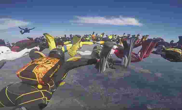 «На висоті 5530 метрів 50 спортсменів відокремилися від літака АН-72 і зібрали фігуру, у вільному падінні перебудувалися в інший візерунок і показали 2 формації, протримавшись 11 секунд», - йдеться у повідомленні.