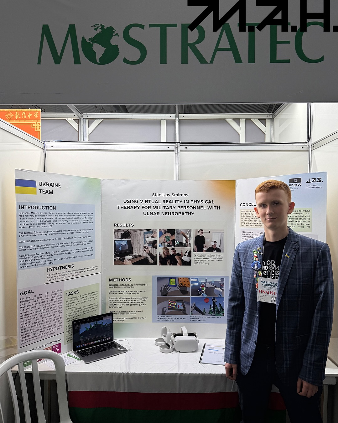 - Станіслав Смірнов (Кіровоградська область) представив проєкт щодо використання віртуальної реальності у фізичній терапії військових із нейропатією ліктьового нерва –інноваційну технологію, що поєднує медицину та VR і відкриває нові можливості для реабілітації. Наукова керівниця – Валентина Черній.