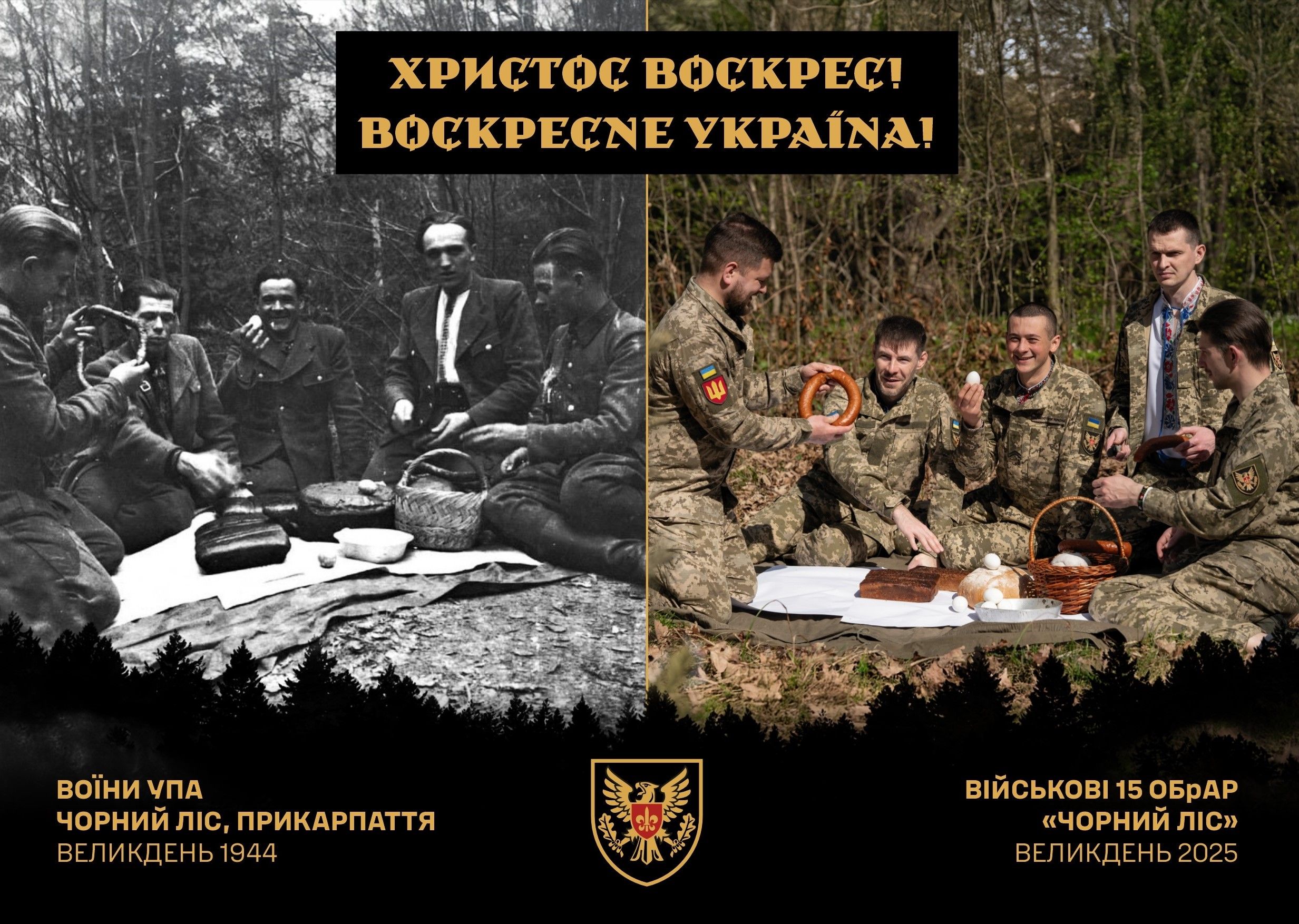 Військовослужбовці 15 окремої бригади артилерійської розвідки «Чорний ліс» зробили реконструкцію історичних фото святкування Великодня бійцями УПА. Цю подію зафіксували на світлинах 1944 року в лісовому масиві Прикарпаття Чорний ліс, сучасна бригада з ідентичною назвою відтворила подію 81-річної давності.