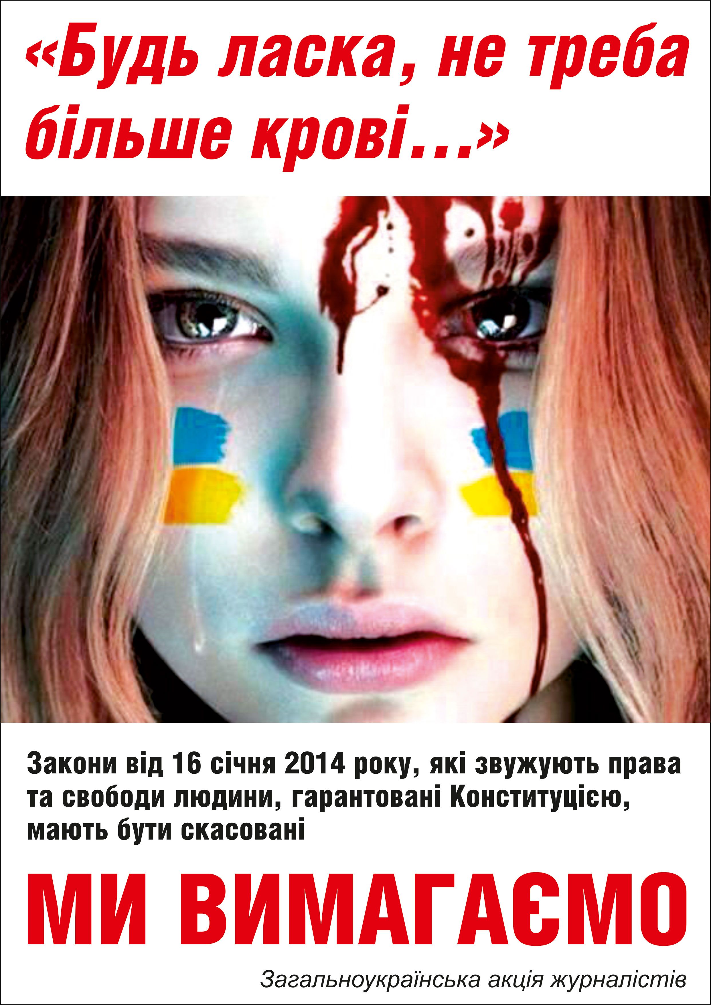 Ми, журналісти України, що живуть у різних регіонах України, мають різні політичні погляди, ставимо свої підписи під цим документом і рішуче вимагаємо: