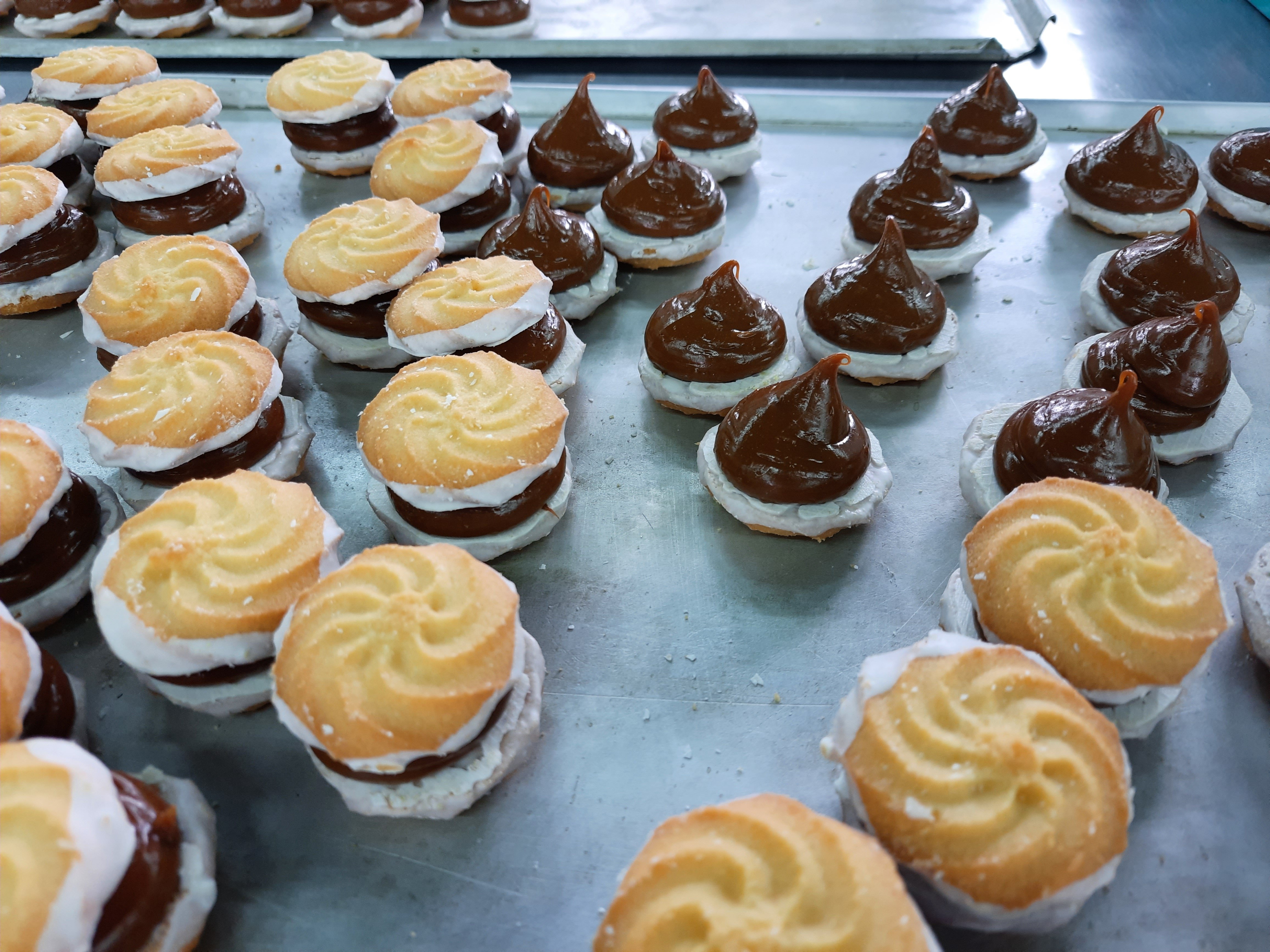 «Ми тут більше року. Труднощі були, коли прийшли дівчата, які ніколи не бачили, як працює кондитерське виробництво. Не вміли працювати з глазурованою машиною. І мені довелося це все показувати. Кондитер – це така художня, натхненна праця, приємна. Але трохи важко, бо доводиться багато годин працювати на ногах. Але, мабуть, кожен з них колись мріяв стати кондитером. Я теж до цього була технологом ковбасного виробництва, а потім перекваліфікувалася», – розповіла бригадирка кондитерського цеху, харків’янка Наталія Гайденко.