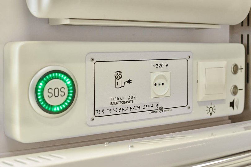 В усіх інклюзивних вагонах встановлені рельєфні таблички зі шрифтом Брайля, нанесено контрастне маркування для людей з вадами зору, а вхідна група обладнана подовженими поручнями та складними пандусами.
