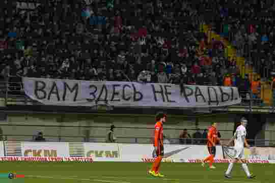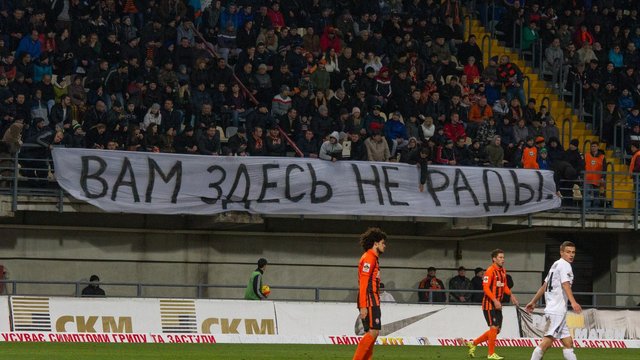 Нагадаємо, 21 листопада під час матчу УПЛ «Шахтар» - «Волинь», який «гірники» приймали у Запоріжжі, місцеві вболівальники вивісили банер «Вам здесь не рады». Також на матчі були присутні численні переселенці із Донбасу, а також фани, які спеціально приїхали підтримати «Шахтар» із Донецької області.