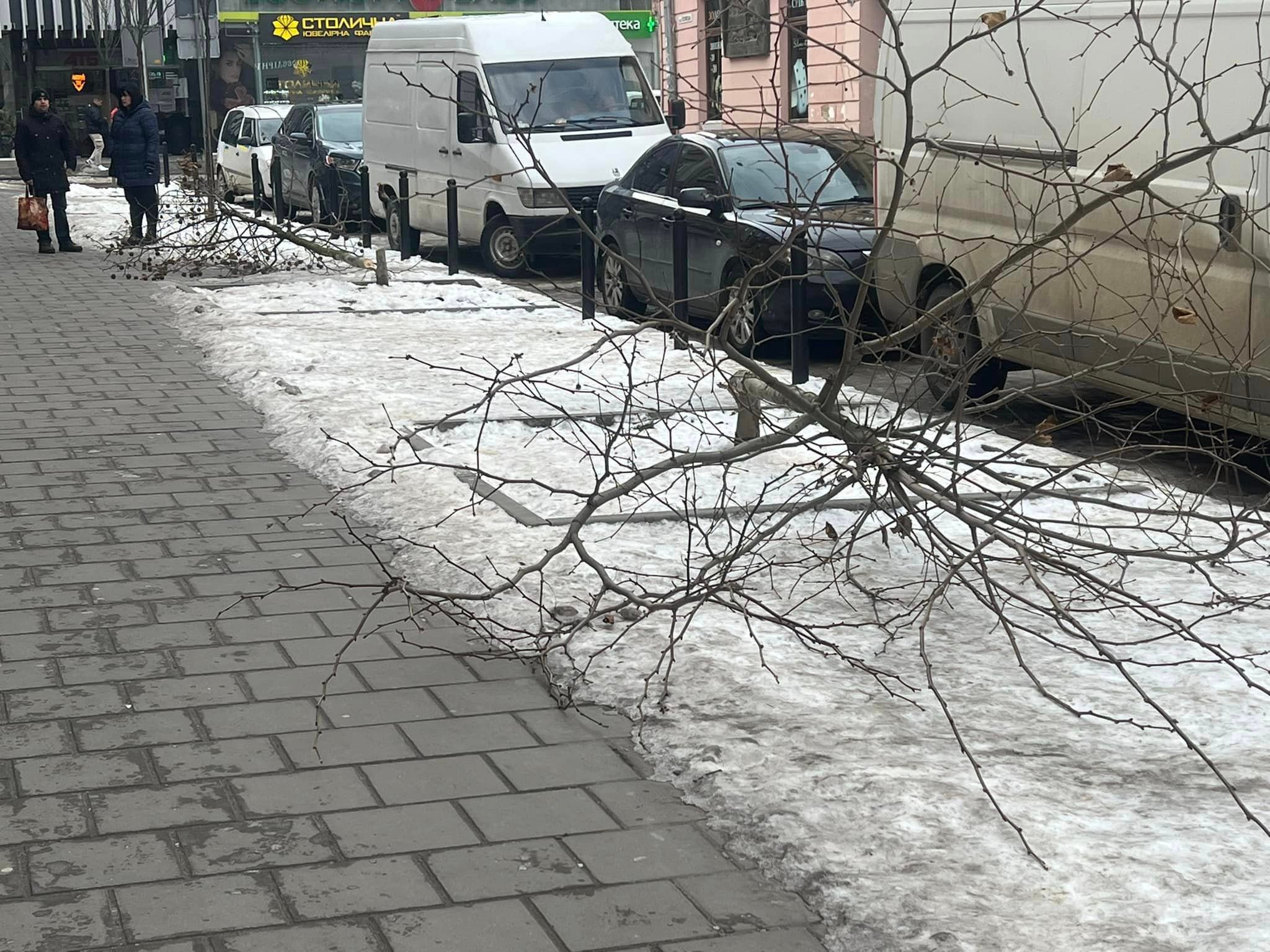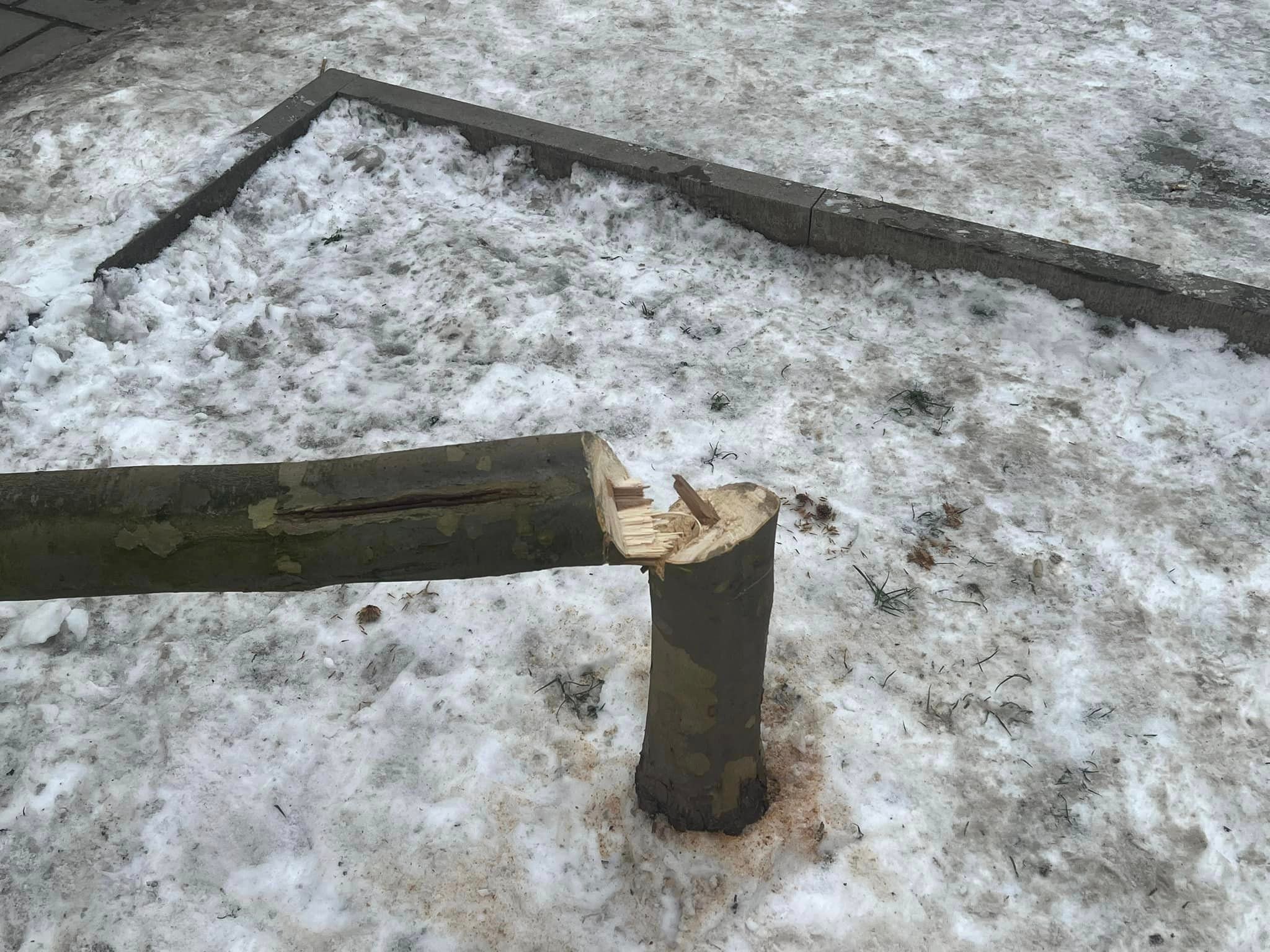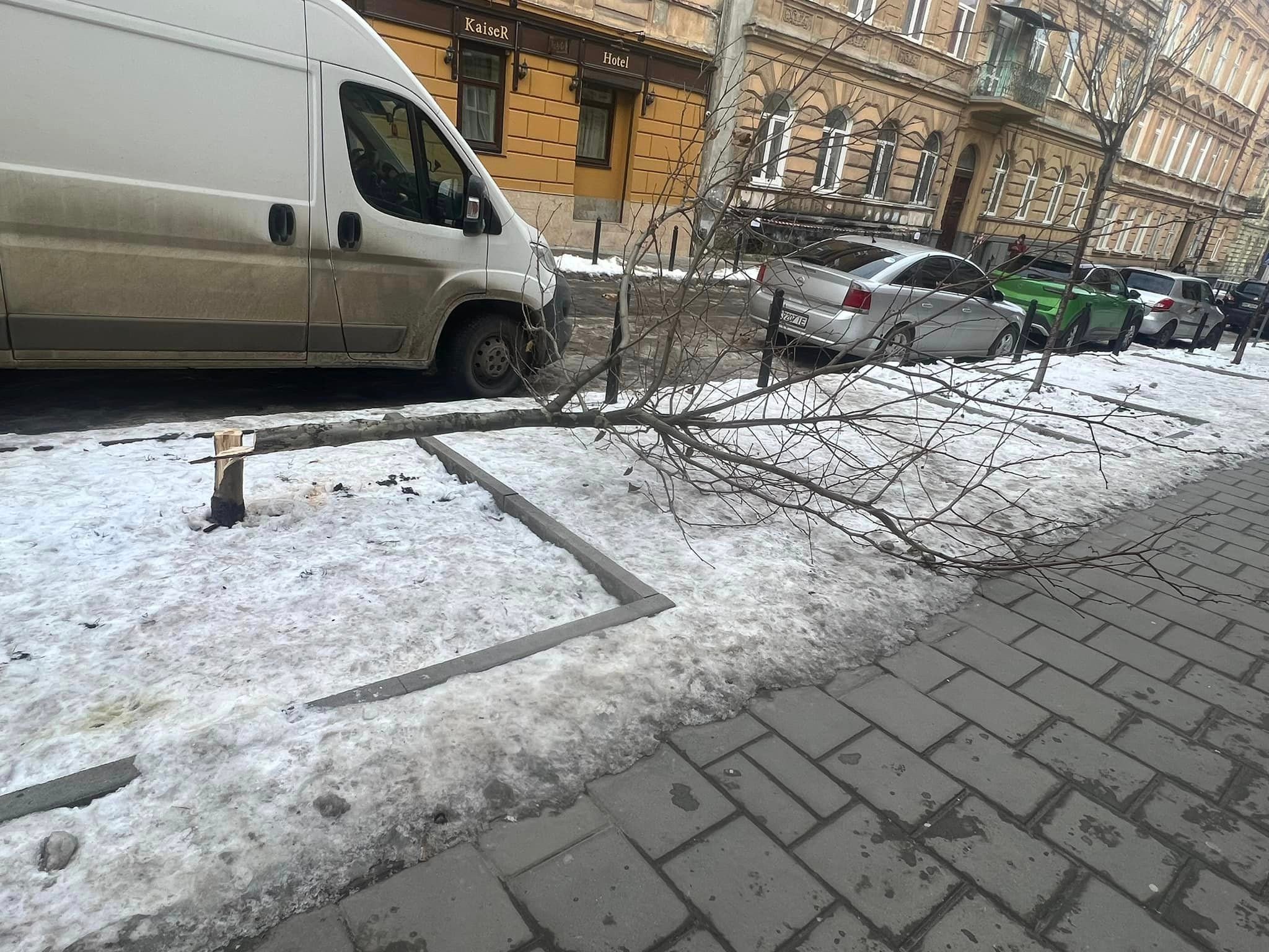 Уночі двоє зловмисників зрізали чотири платани в центрі Львова