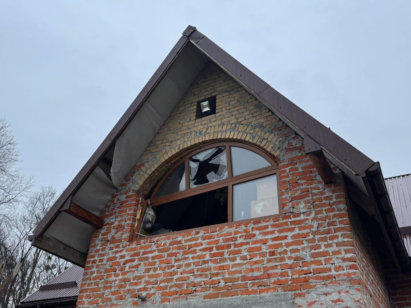 Наслідки нічної атаки російських дронів, пошкоджений приватний будинок у селі Підбірці (фото Андрія Садового)