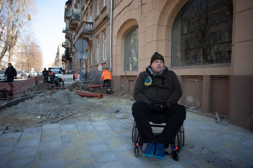 Ветеран та керівник абілітаційного процесу Lviv Habilitation Сentre Сергій Тітаренко також пересувається на кріслі колісному.