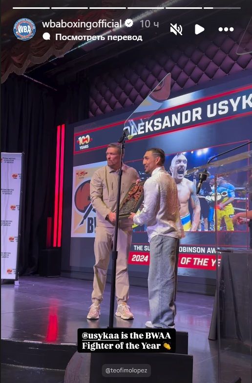 Нагороду 38-річному українцю вручив Теофімо Лопес, який у 2020-му здолав Василя Ломаченка за рішенням суддів. До слова, це другий подібний трофей в колекції Усика. Вперше BWAA назвала його найкращим у 2018 році, коли він став абсолютним чемпіоном світу у першій важкій вазі (в 2017-му цей приз присудили іншому українцю – Ломаченку). За весь час нікому не вдавалося завоювати цей трофей більш ніж три рази. Цікаво, що нагороду від BWAA також отримав менеджер Усика Егіс Клімас.