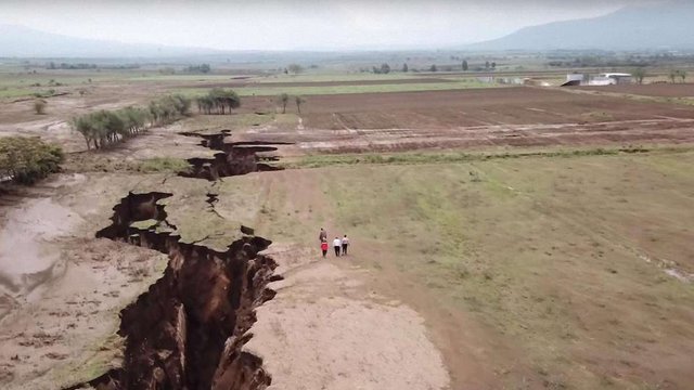 Недалеко від столиці Кенії Найробі з'явилася величезна тріщина. У довжину вона сягає кількох кілометрів, глибина - 15 метрів, а ширина - 20 метрів. Вчені припустили, що через 50 мільйонів років Африка може бути розколота на дві частини, передає CBS.