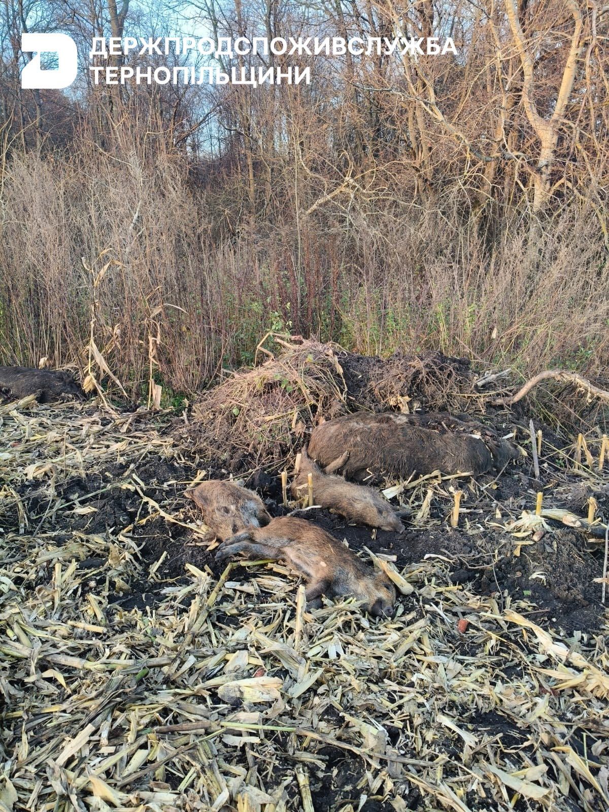 У Збаразькій громаді на Тернопільщини через випадок загибелі диких кабанів від африканської чуми свиней (АЧС) оголосили карантин. У поле, де місцеві мешканці виявили мертвих диких тварин, виїхали фахівці Держпродспоживслужби. Під час дослідження території вони натрапили на сімох загиблих – трьох дорослих кабанів і четверо поросят. Про це повідомили на фейсбук-сторінці управління Держпродспоживслужби в Тернопільській області.