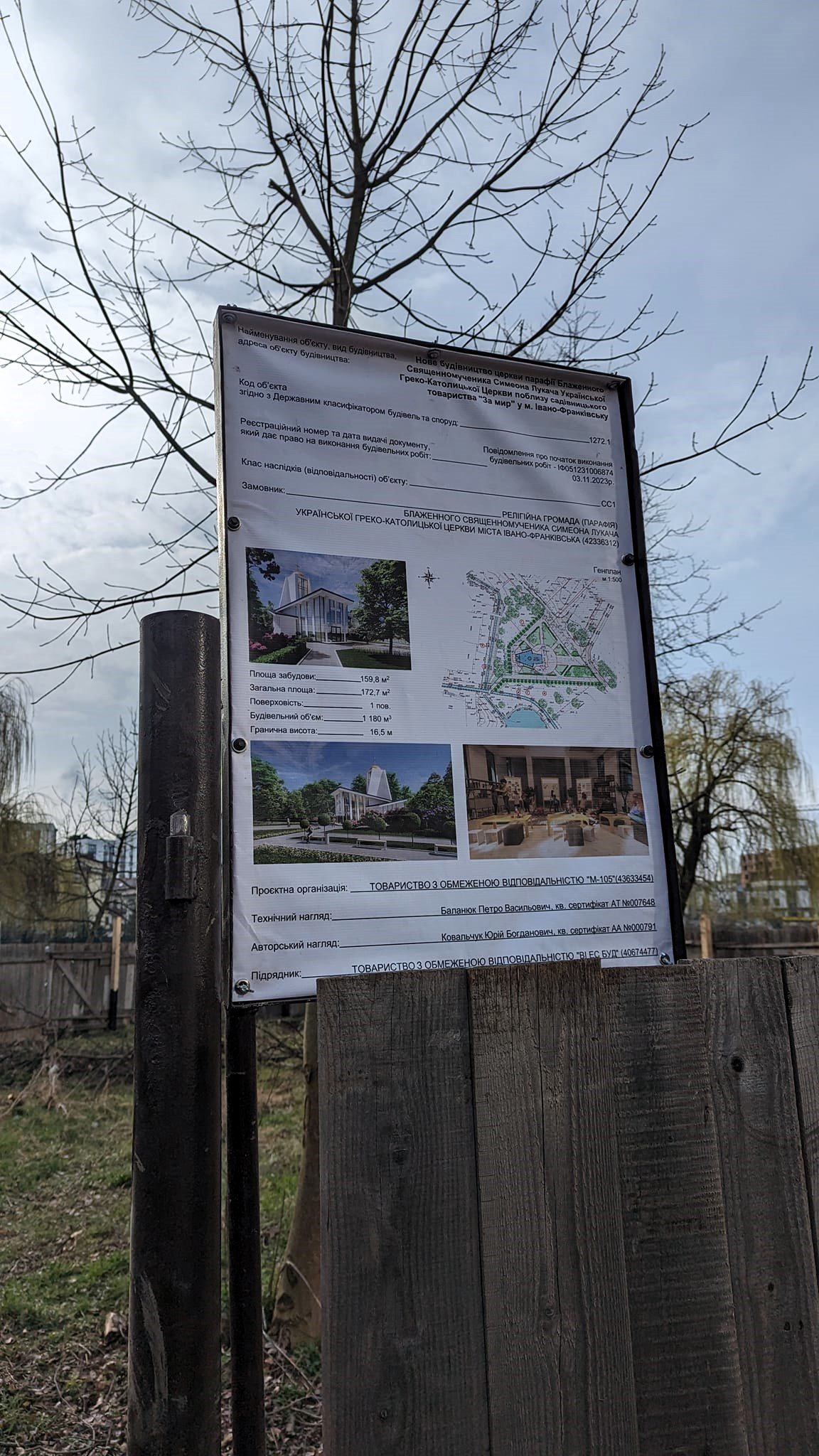 Світлини з місця будівництва церкви на вулиці Гетьмана Мазепи, оприлюднили мешканці Івано-Франківська у Facebook. На паспорті об’єкта, розміщеному на обгородженій території, вказано, що площа забудови храму, висотою 16,5 м, займе близько 160 м2. Будуватиме церкву ТОВ «Ві Ес Буд» на замовлення парафії Блаженного священномученика Симеона Лукача УГКЦ.